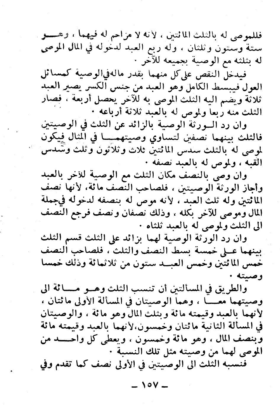والطريق في المسألتين أن تنسب الثلث وهو مائة إلى وصيتهما معًا، وهما الوصيتان في المسألة الأولى مائتان؛ لأنهما بالعبد وقيمته مائة، وبثلث المال وهو مائة، والوصيتان في المسِألة الثانية مائتان وخمسون؛ لأنهما بالعبد وقيمته مائة وبنصف المال، وهو مائة وخمسون، ويعطى كل واحد من الموصى لهما من وصيته مثل تلك النسبة.