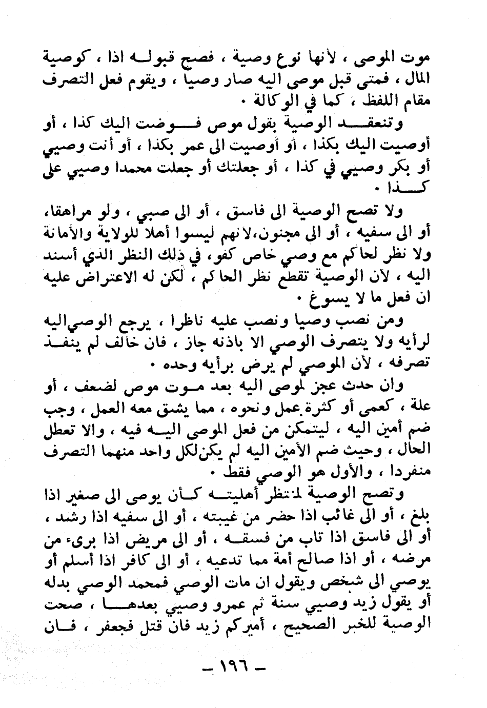 وتنعقد الوصية بقول موص فوضت إليك كذا، أو أوصيت إليك بكذا، أو إلى عمر بكذا، أو أنت وصيي أو بكر وصيي في كذا، أو جعلتك أو جعلت محمدًا وصيي على كذا.