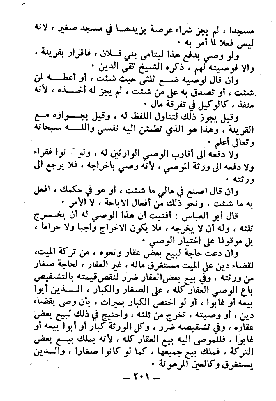 قال أبو العباس: أفتيت أن هذا الوصي له أن يخرج ثلثه، وله أن لا يخرجه، فلا يكون الإخراج واجبًا ولا حرامًا، بل موقوفًا على اختيار الوصي.