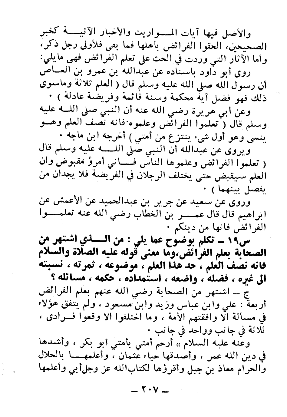 س21: تكلم بوضوح عما يلي: من الذي اشتهر من الصحابة بعلم الفرائض، وما معنى قوله - عليه الصلاة والسلام - فإنه نصف العلم، حد هذا العلم، موضوعه، ثمرته، نسبته إلى غيره، فضله، واضعه، استمداده، حكمه، مسائله؟