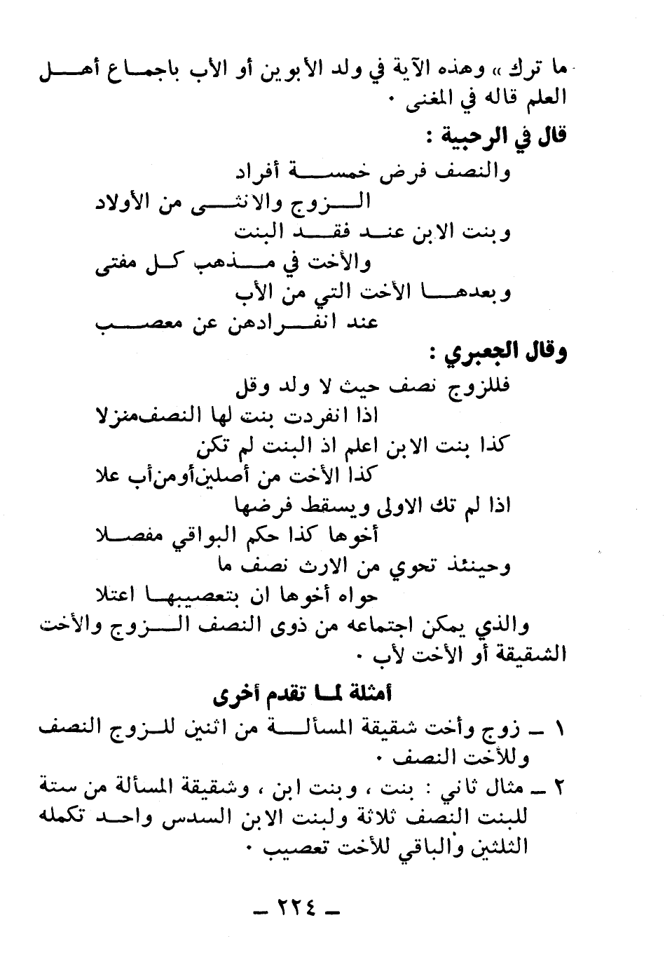 1 - زوج وأخت شقيقة المسألة من اثنين للزوج النصف وللأخت النصف.