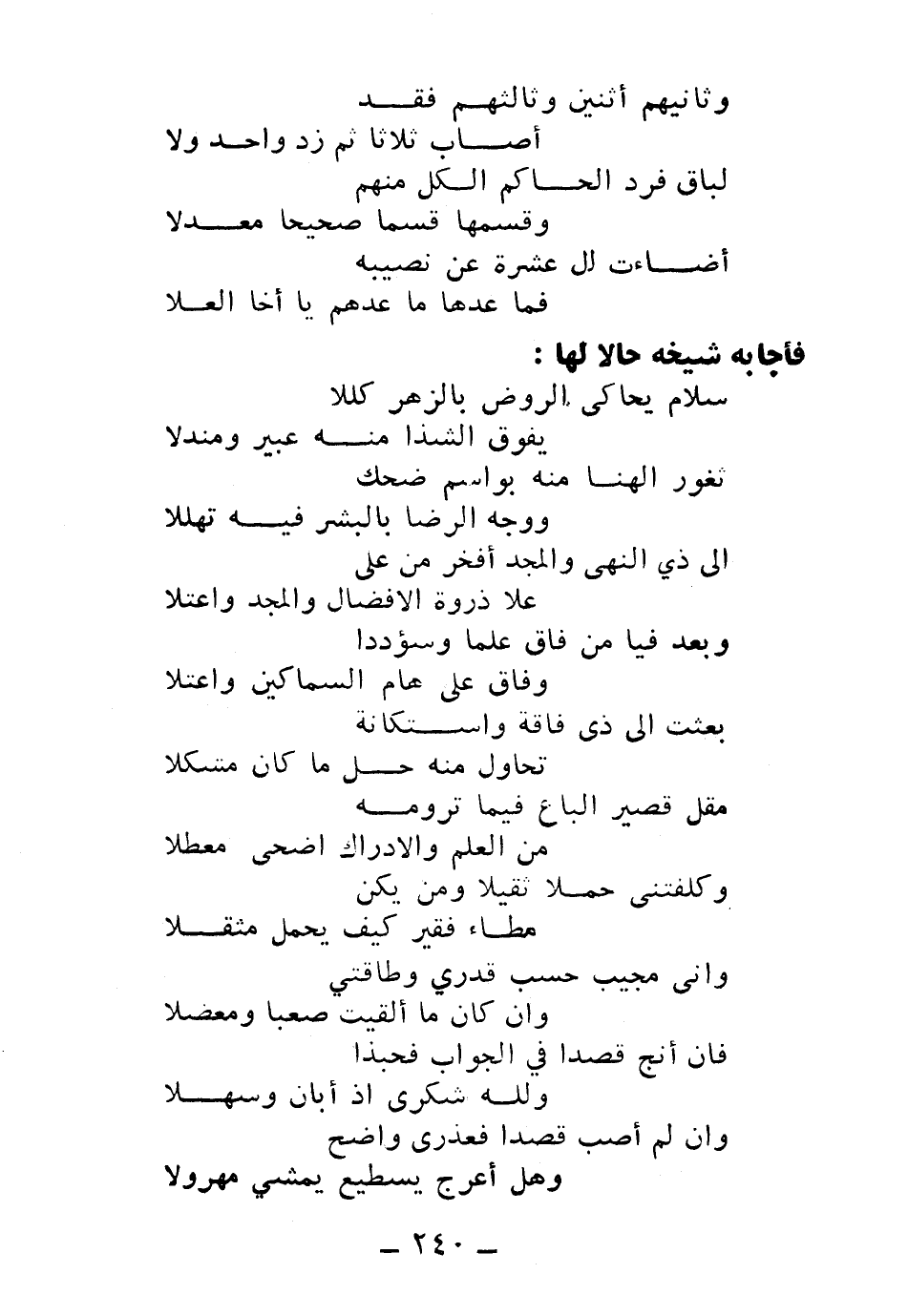 وبعد فيا من فاق علما وسؤددا ... وفاق على هام السماكين واعتلا