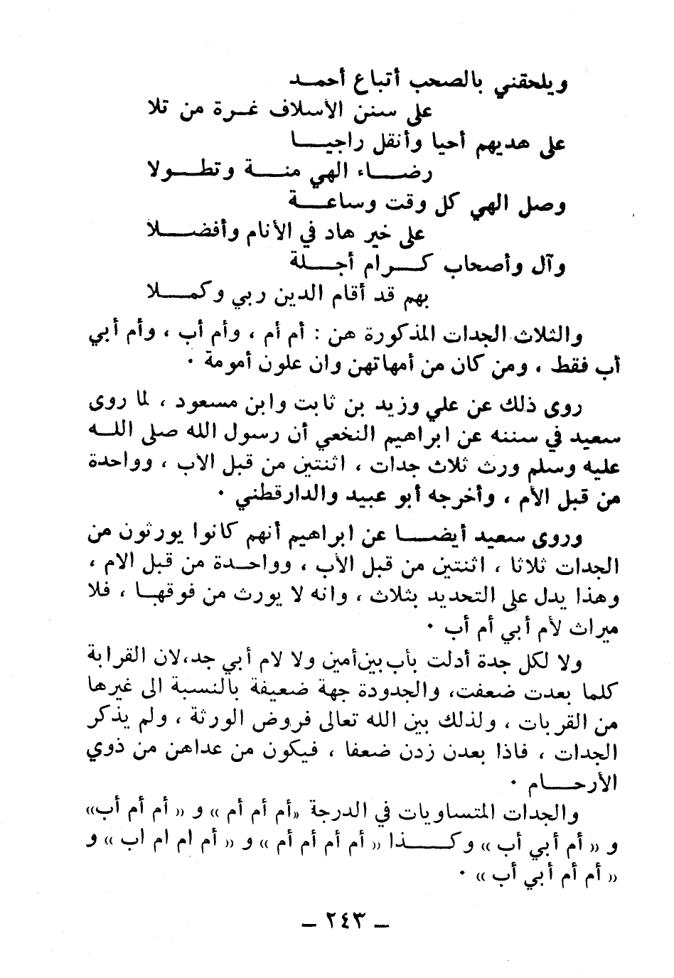 والثالث الجدات المذكورة هن: أم أم، وأم أب، وأم أبي أب فقط، ومن كان من أمهاتهن وإن علون أمومة.