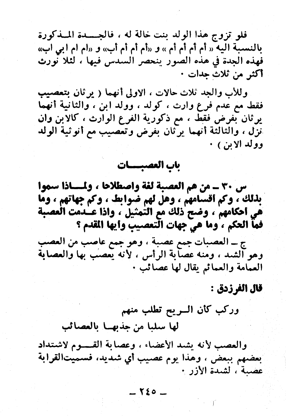 س33: من هم العصبة لغة واصطلاحًا، ولماذا سموا بذلك، وكم أقسامهم، وهل لهم ضوابط، وكم جهاتهم، وما هي أحكامهم، وضح ذلك مع التمثيل، وإذا عدمت العصبة فما الحكم، وما هي جهات التعصيب وأيها المقدم؟