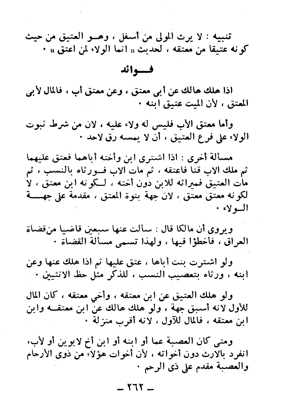 تنبيه: لا يرث المولى من أسفل، وهو العتيق من حيث كونه عتيقًا من معتقه، لحديث: «الولاء لمن أعتق» .