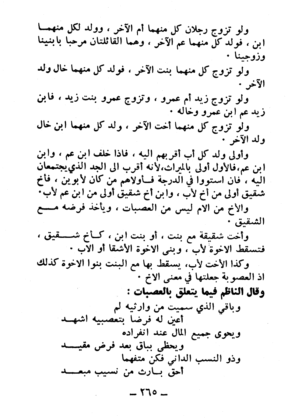 وقال الناظم فيما يتعلق بالعصبات: