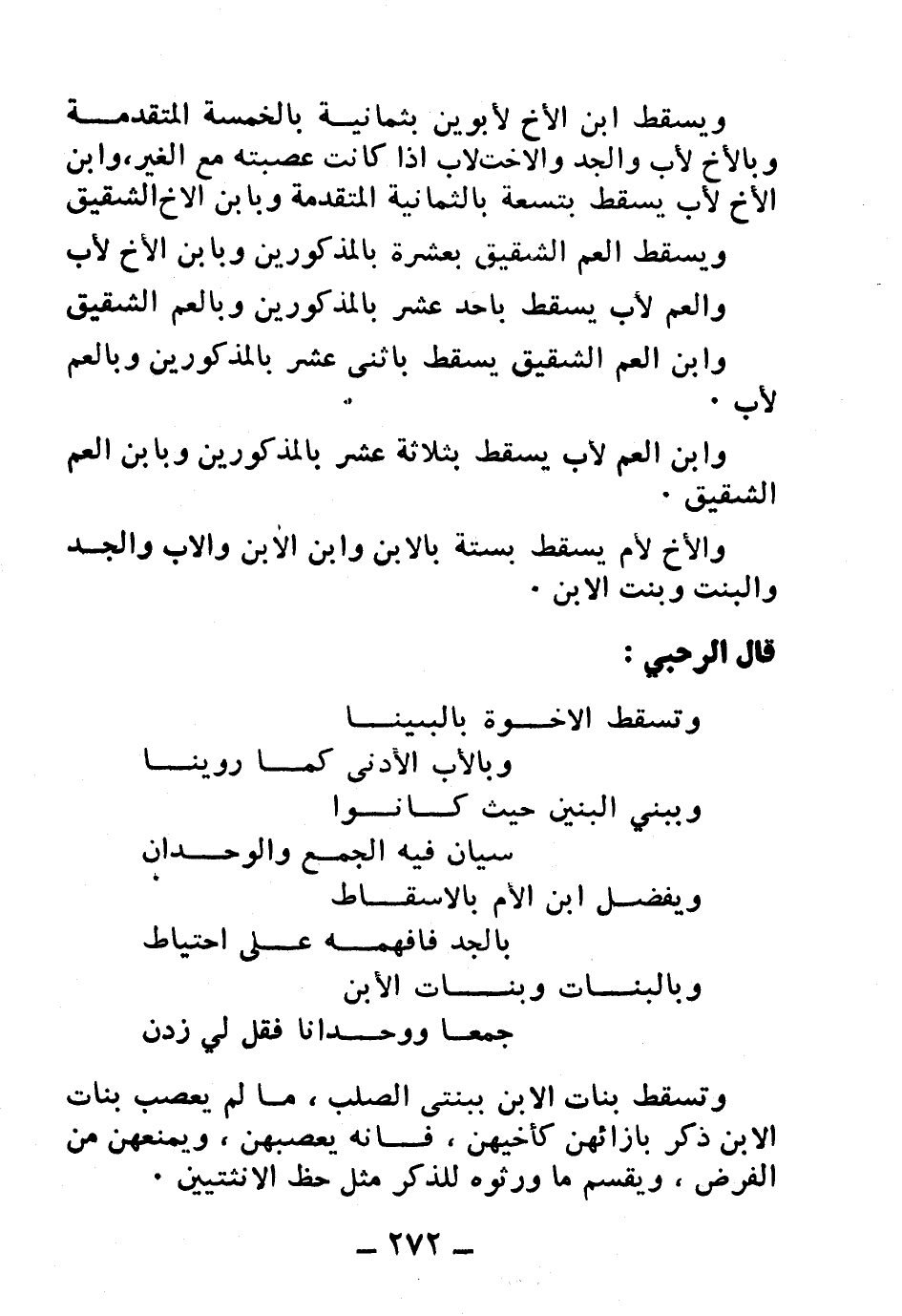 وتسْقطُ الإخوَةُ بالبَنِينا ... وبالأبِ الأدنَى كمَا رُوِينا