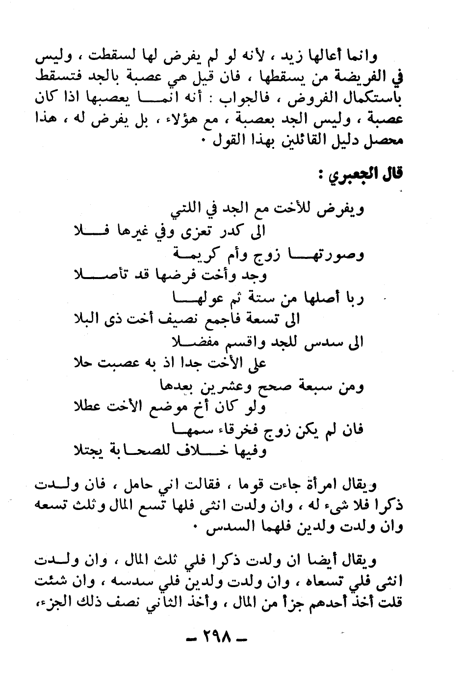 ويقال امرأة جاءت قومًا، فقالت إني حامل، فإن ولدت ذكرًا فلا شيء له، وإن ولدت أنثى فلها تسع المال وثلث تسعه وإن ولدت ولدين فلهما السدس.