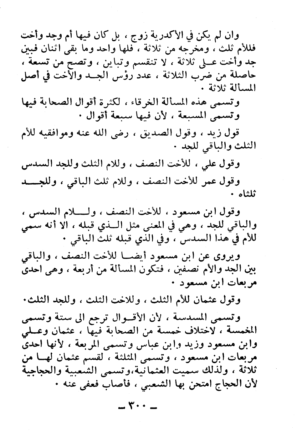 وقول ابن مسعود، للأخت النصف، وللأم السدس، والباقي للجد، وهي في المعنى مثل الذي قبله، إلا أنه سمي للأم في هذا السدس، وفي الذي قبله ثلث الباقي.