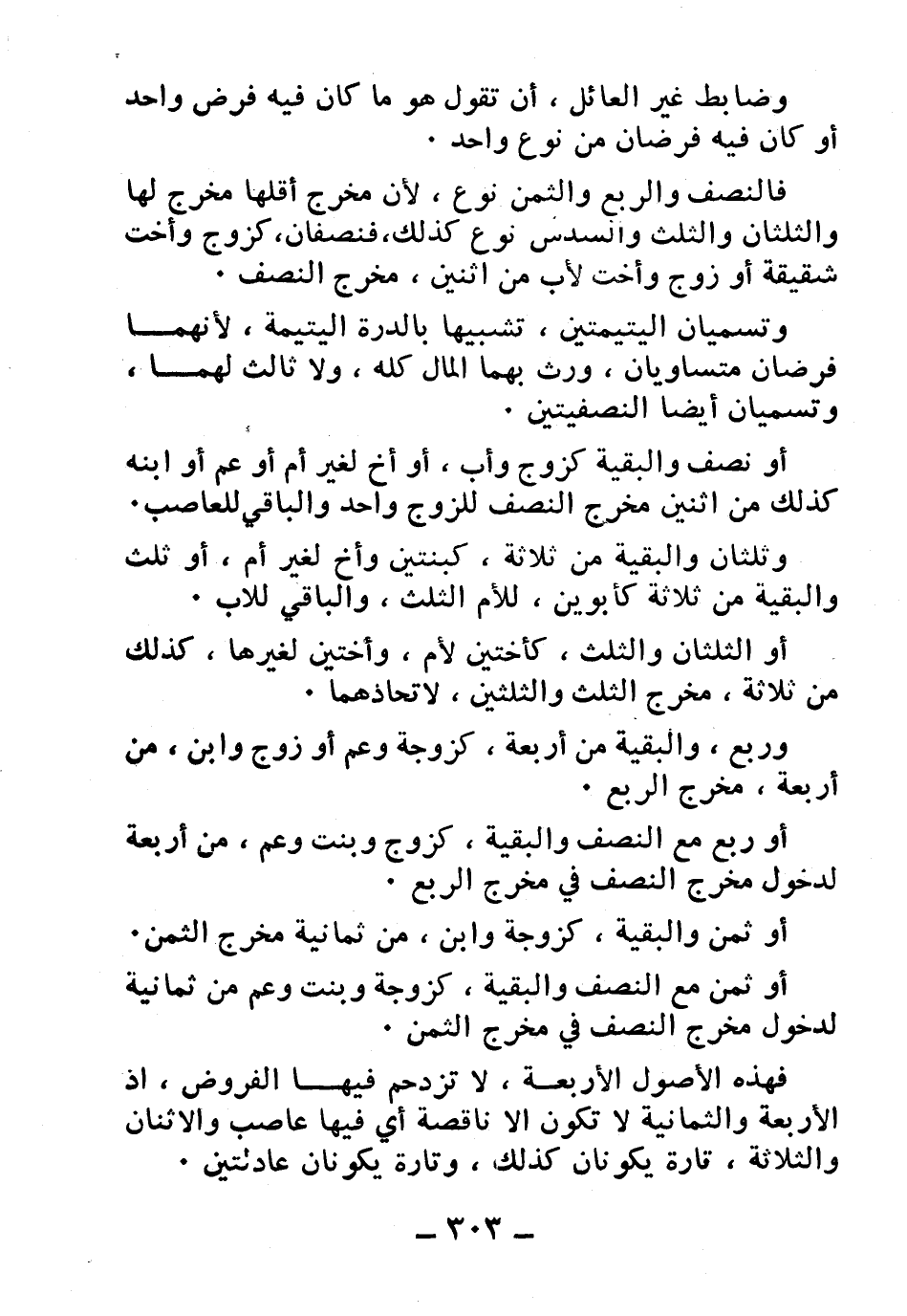فهذه الأصول الأربعة، لا تزدحم فيها الفروض، إذ الأربعة والثمانية لا تكون إلا ناقصة أي فيها عاصب والاثنان والثلاثة، تارة يكونان كذلك، وتارة يكونان عادلتين.