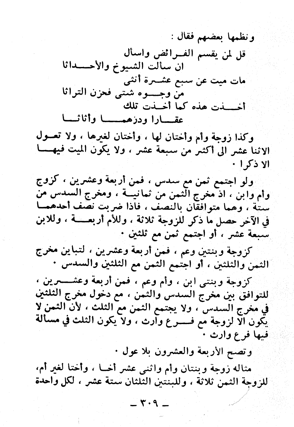 قل لمن يقسم الفرائض واسأل ... إن سألت الشيوخ والأحداثا