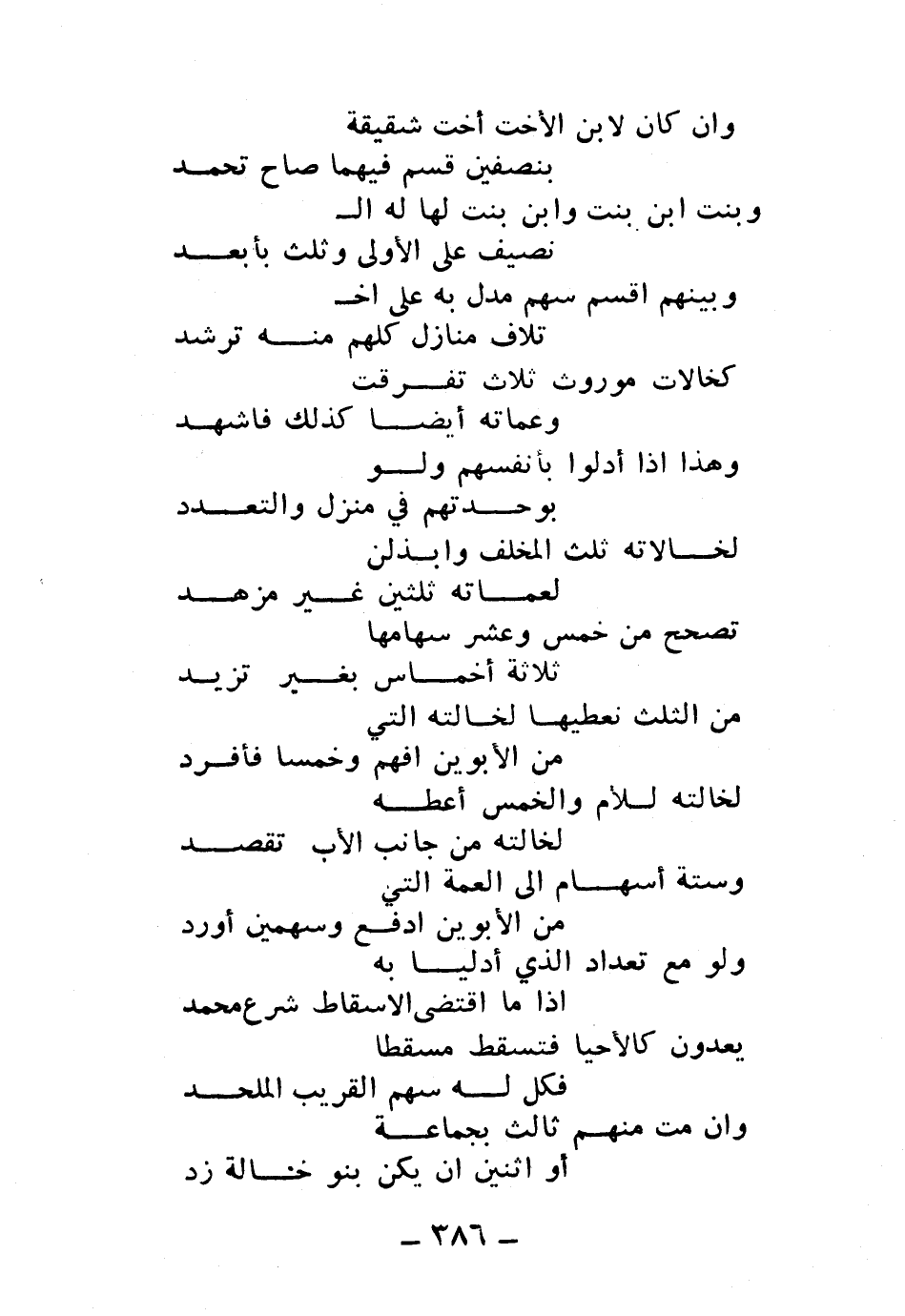 لخالاته ثلث المخلف وابذلن ... لعماته ثلثين غير مزهد