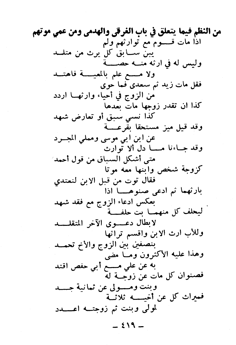 فصنوان كل مات عن زوجة له ... وبنت ومولى عن ثمانية جد