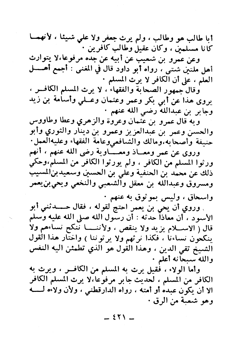 أبا طالب هو وطالب، ولم يرث جعفر ولا علي شيئًا، لأنهما كانا مسلمين، وكان عقيل وطالب كافرين.