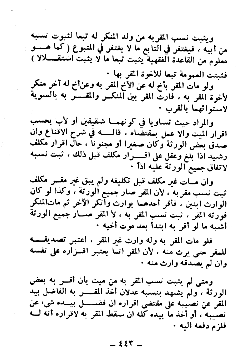 ويثبت نسب المقر به من ولد المنكر له تبعًا لثبوت نسبه من أبيه، فيغتفر في التابع ما لا يغتفر في المتبوع (كما هو معلوم من القاعدة الفقهية يثبت تبعًا ما لا يثبت استقلالاً) فثبتت العمومة تبعًا للأخوة المقر بها.