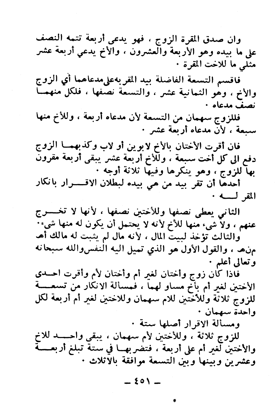 فاقسم التسعة الفاضلة بيد المقر به على مدعاهما أي الزوج والأخ، وهو الثمانية عشر، والتسعة نصفها، فلكل منهما نصف مدعاه.