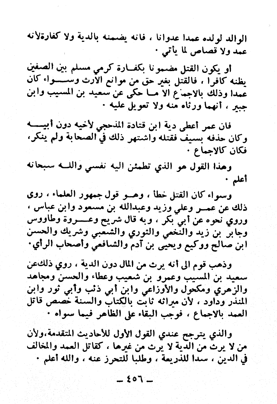 أو يكون القتل مضمونًا بكفارة كرمي مسلم بين الصفين يظنه كافرًا، فالقتل بغير حق من موانع الإرث وسواء كان عمدًا وذلك بالإجماع إلا ما حكى عن سعيد بن المسيب وابن جبير، أنهما ورثاه منه ولا تعويل عليه.