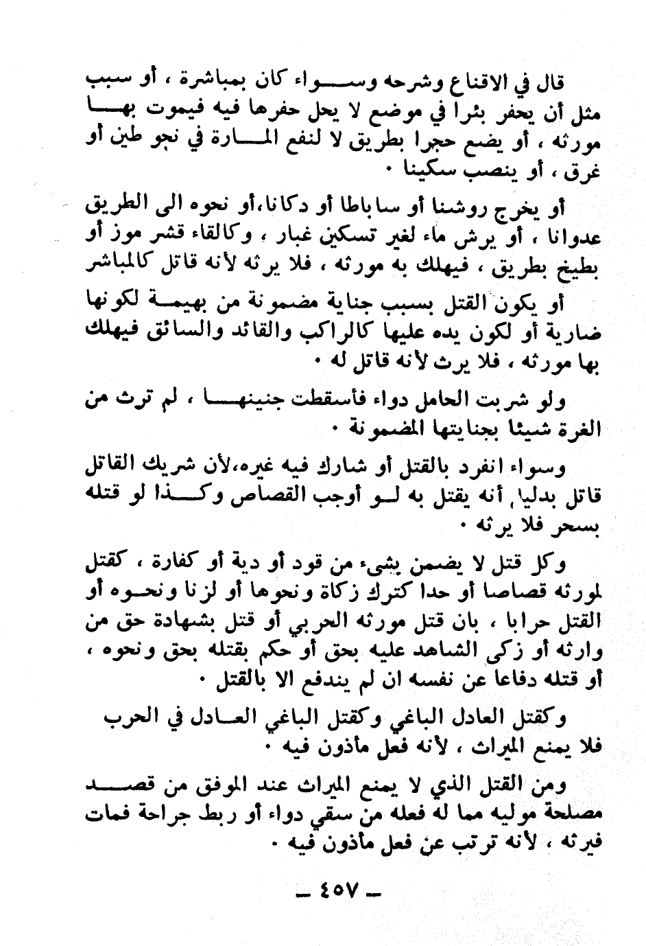 قال في الإقناع وشرحه وسواء كان بمباشرة، أو سبب مثل أن يحفر بئرًا في موضع لا يحل حفرها فيه فيموت بها مورثه، أو يضع حجرًا بطريق لا لنفع المارة في نجو طين أو غرق، أو ينصب سكينًا.