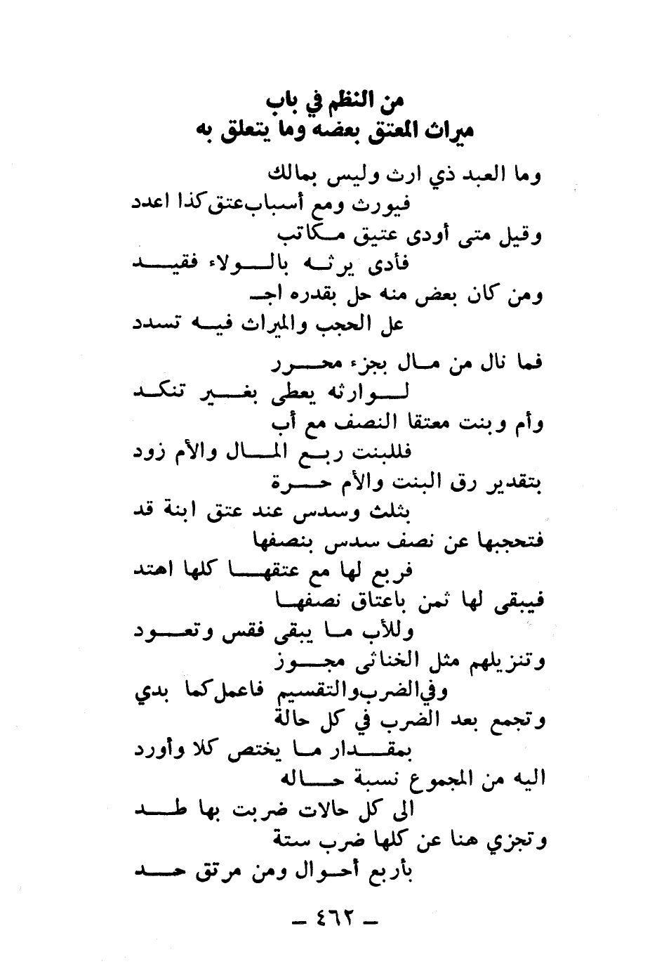 وما العبد ذي إرث وليس بمالك ... فيورث ومع أساب عتق كذا اعدد