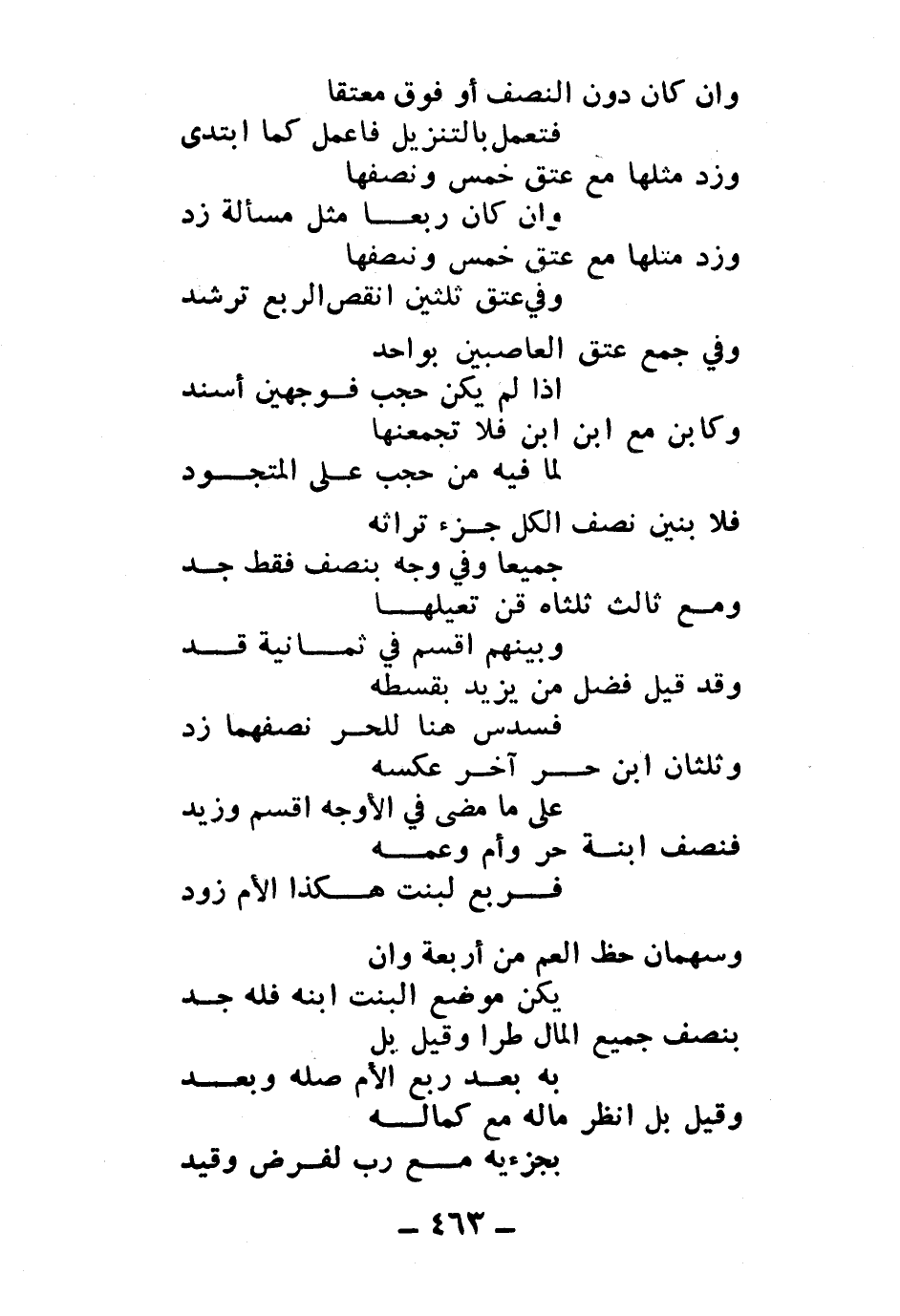 وثلثان ابن حر آخر عكسه ... على ما مضى في الأوجه اقسم وزيد