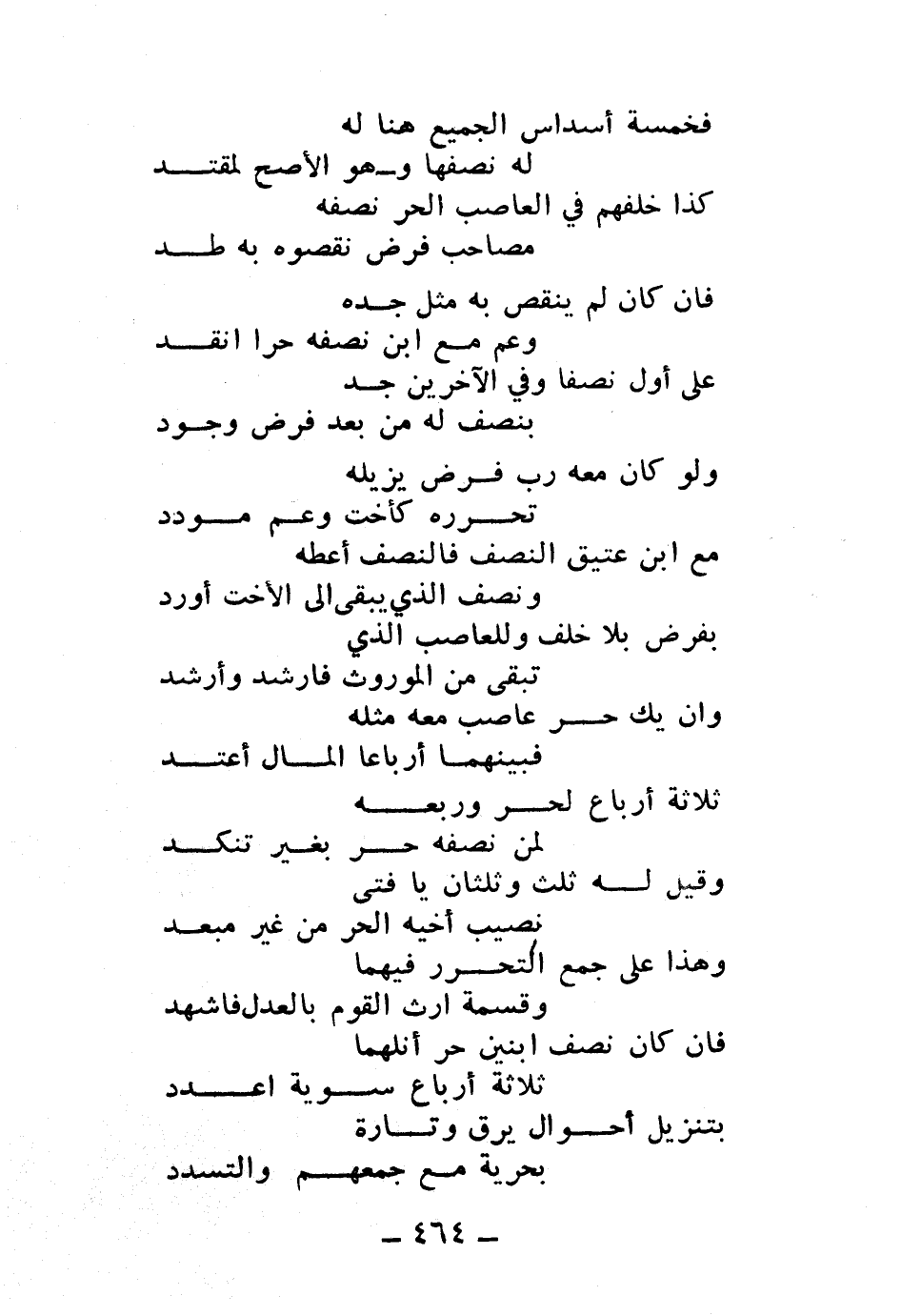 وهذا على جمع التحرر فيهما ... وقسمة إرث القوم بالعدل فاشهد