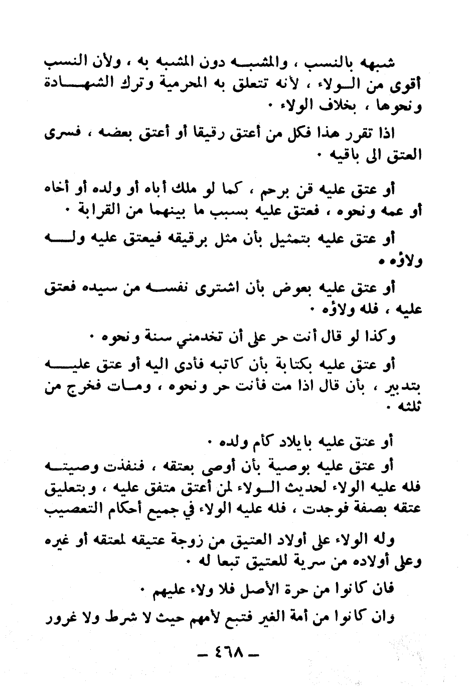 وله الولاء على أولاد العتيق من زوجة عتيقة لمعتقه أو غيره وعلى أولاده من سرية للعتيق تبعًا له.