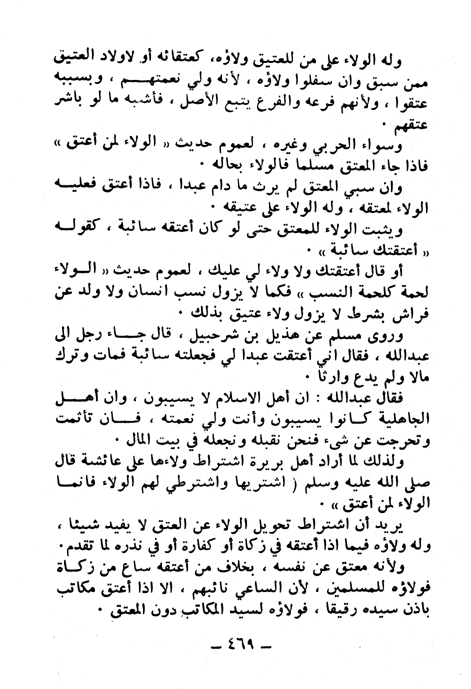 ولذلك لما أراد أهل بريرة اشتراط ولاءها على عائشة قال - صلى الله عليه وسلم -: «اشترِيهاواشترِطي لهم الولاء فإِن الولاء لمن أعتق» .