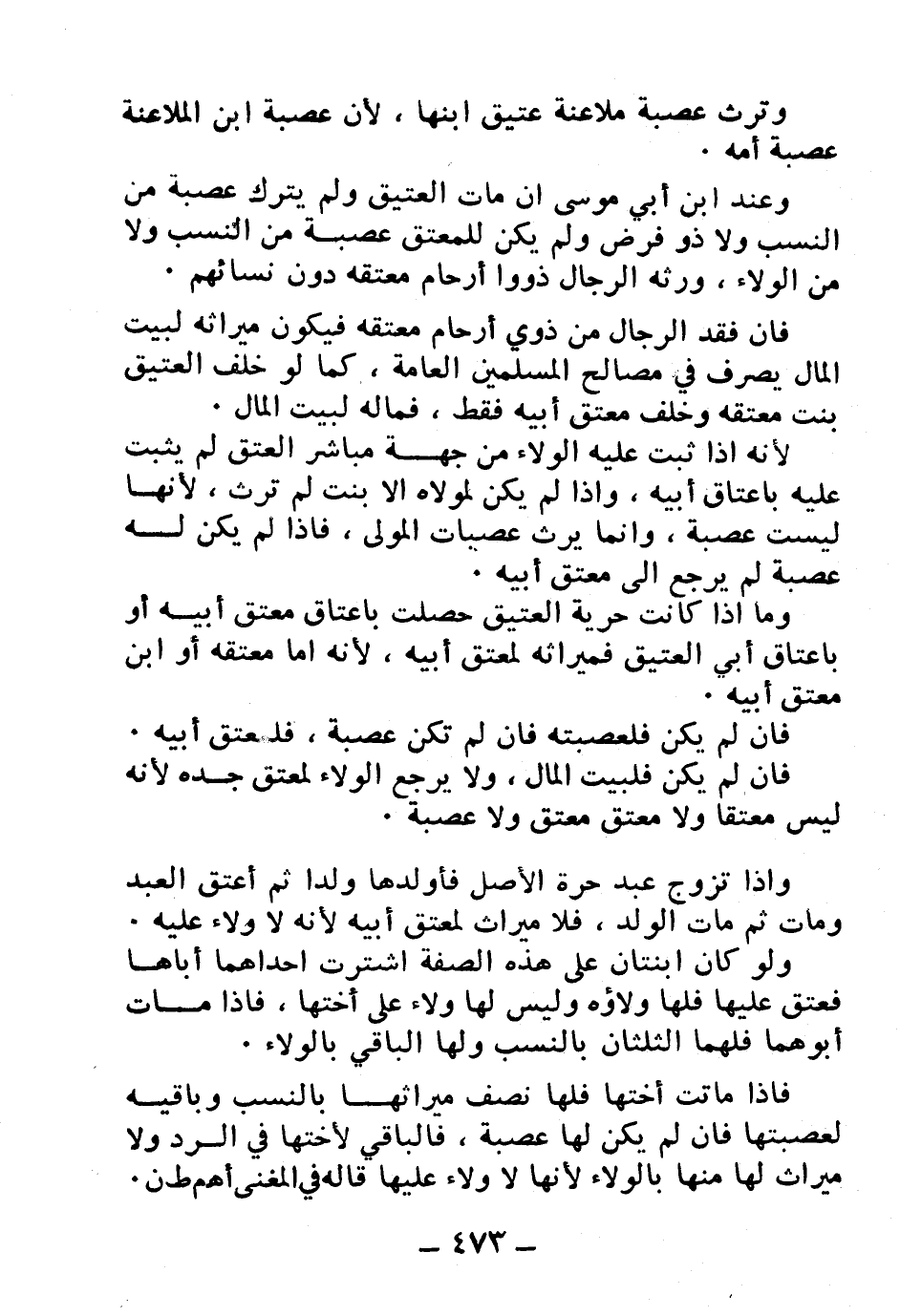 وعند ابن أبي موسى إن مات العتيق ولم يترك عصبة من النسب ولا ذو فرض ولم يكن للمعتق عصبة من النسب ولا من الولاء، ورثه الرجال ذووا أرحام معتقه دون نسائهم.