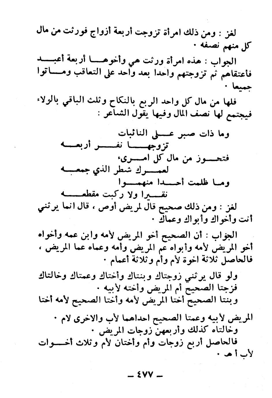 لغز: ومن ذلك امرأة تزوجت أربعة أزواج فورثت من مال كل منهم نصفه.