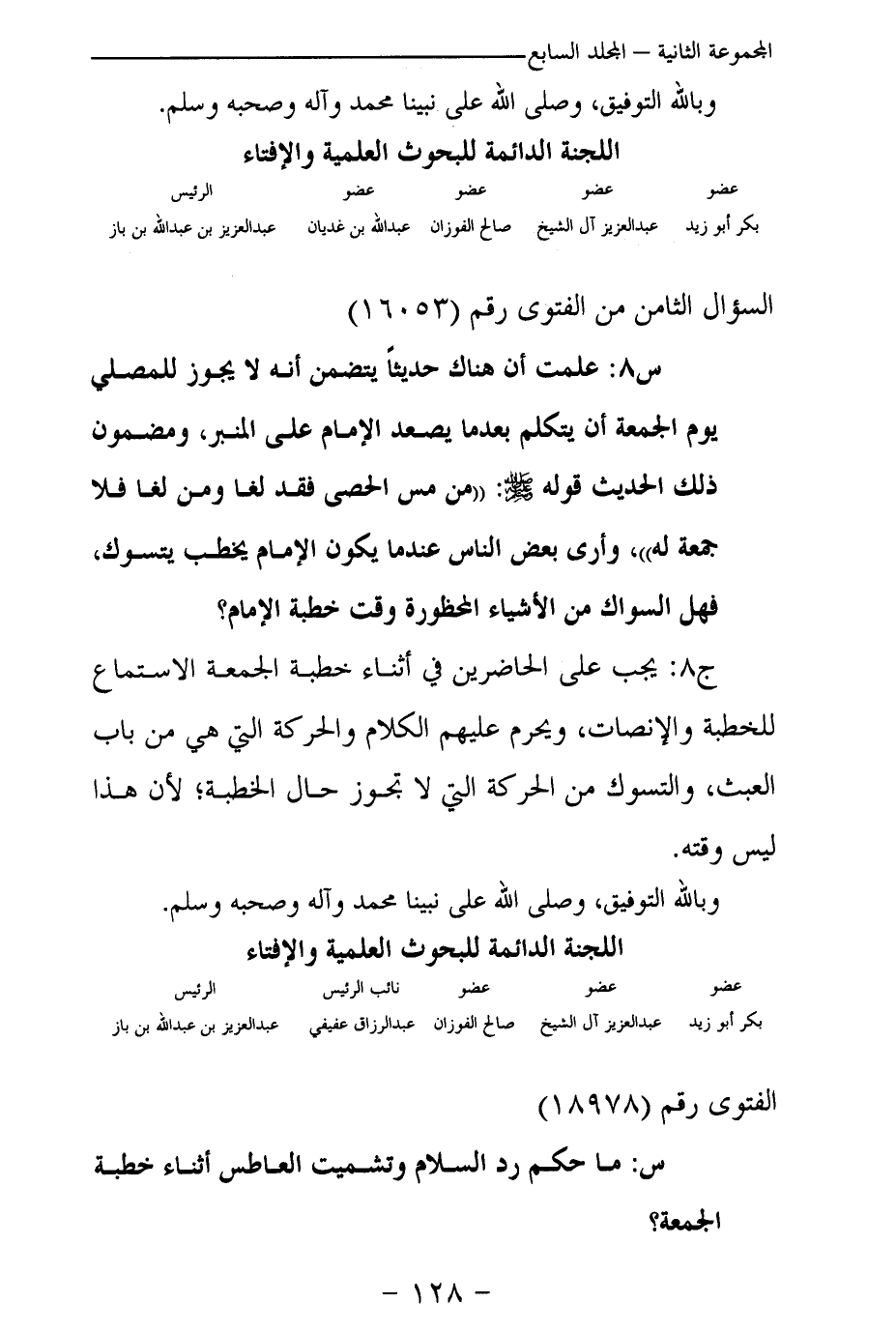 بكر أبو زيد ... عبد العزيز آل الشيخ ... صالح الفوزان ... عبد الله بن غديان ... عبد العزيز بن عبد الله بن باز