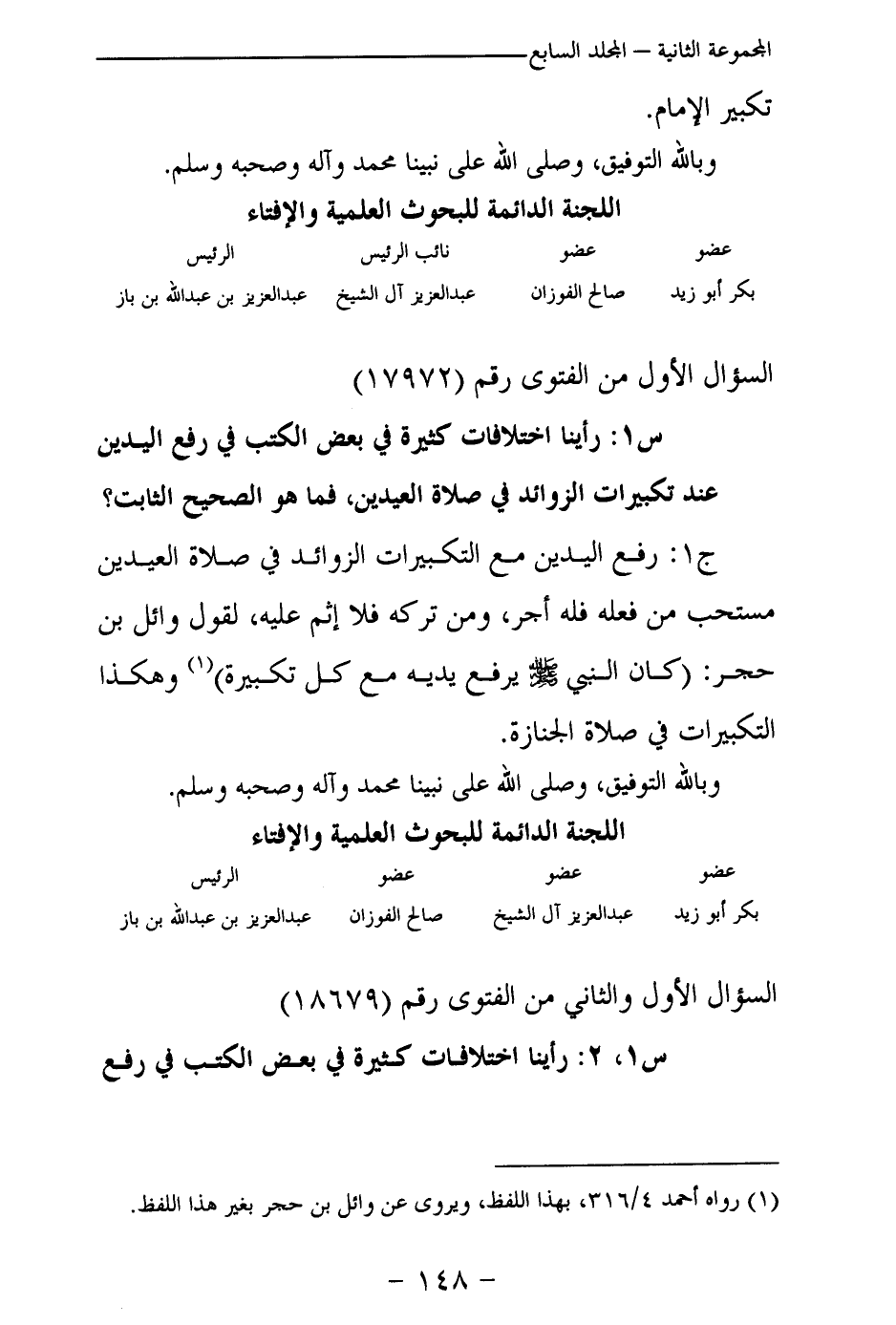 س 1: رأينا اختلافات كثيرة في بعض الكتب في رفع اليدين عند تكبيرات الزوائد في صلاة العيدين، فما هو الصحيح الثابت؟
