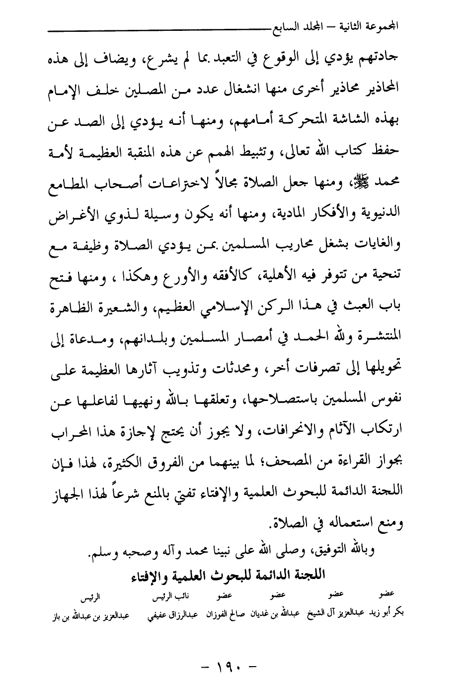 بكر أبو زيد ... عبد العزيز آل الشيخ ... عبد الله بن غديان ... صالح الفوزان ... عبد الرزاق عفيفي ... عبد العزيز بن عبد الله بن باز