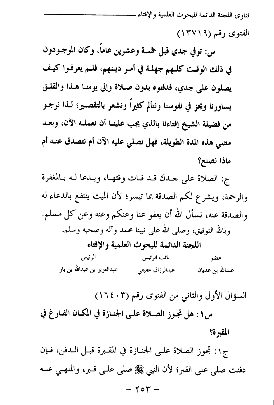 س 1: هل تجوز الصلاة على الجنازة في المكان الفارغ في المقبرة؟