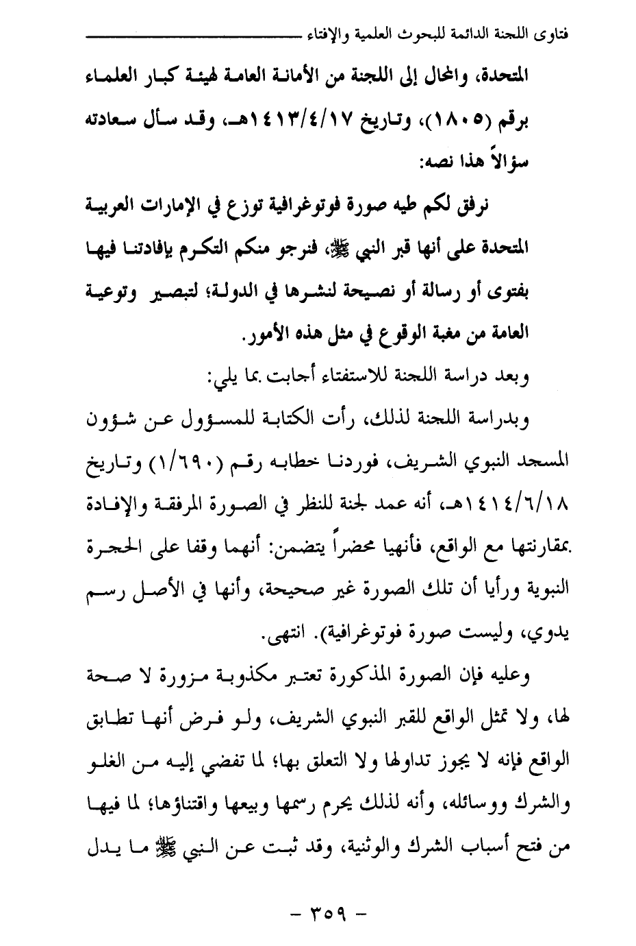 والمحال إلى اللجنة من الأمانة العامة لهيئة كبار العلماء، برقم (1805) وتاريخ 17 / 4 / 1413 هـ وقد سأل سعادته سؤالا هذا نصه: