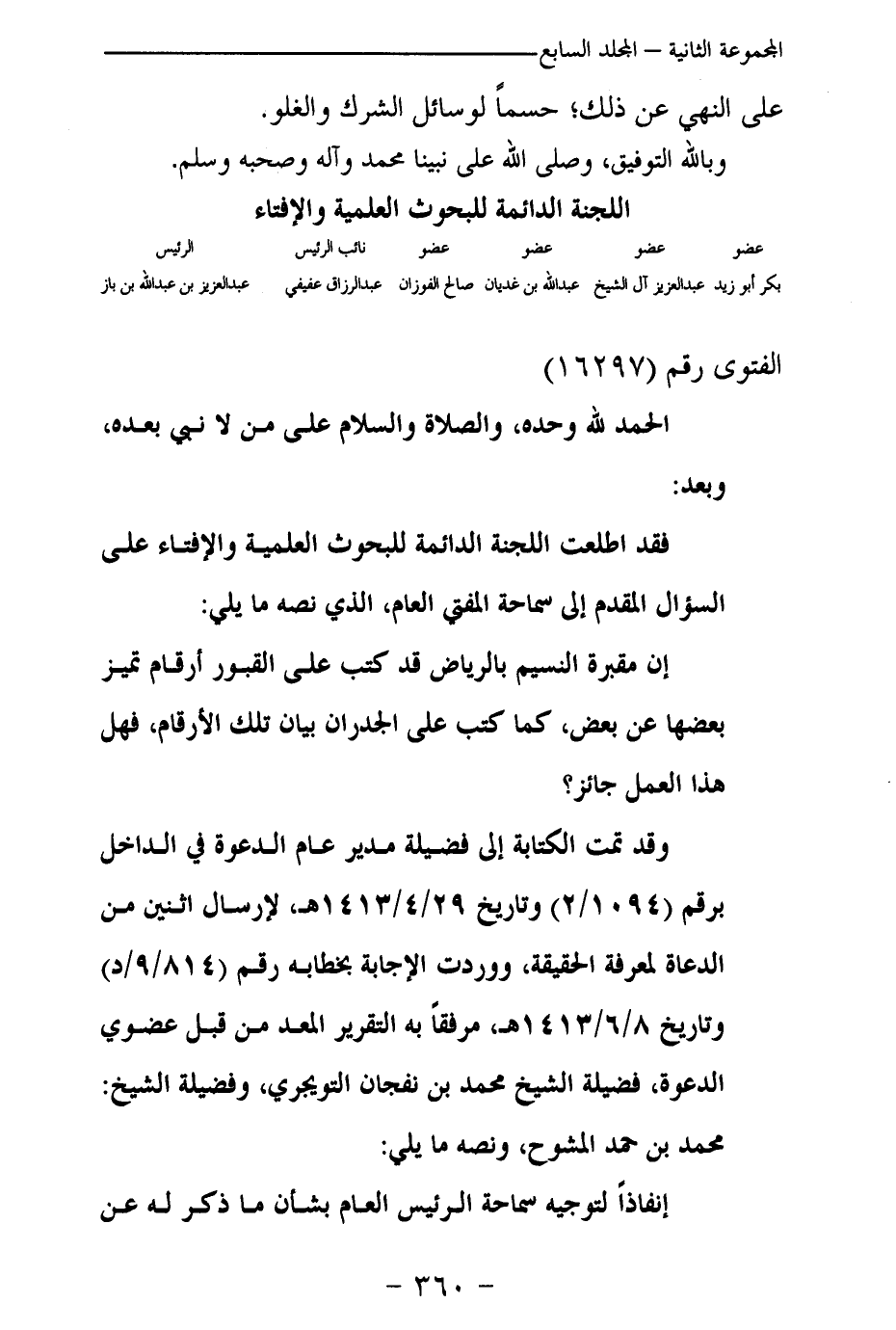 بكر أبو زيد ... عبد العزيز آل الشيخ ... عبد الله بن غديان ... صالح الفوزان ... عبد الرزاق عفيفي ... عبد العزيز بن عبد الله بن باز