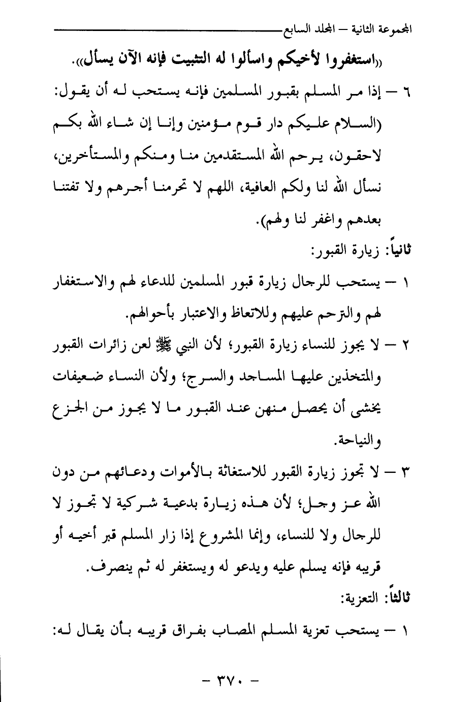 1- يستحب للرجال زيارة قبور المسلمين للدعاء لهم والاستغفار لهم والترحم عليهم وللاتعاظ والاعتبار بأحوالهم.