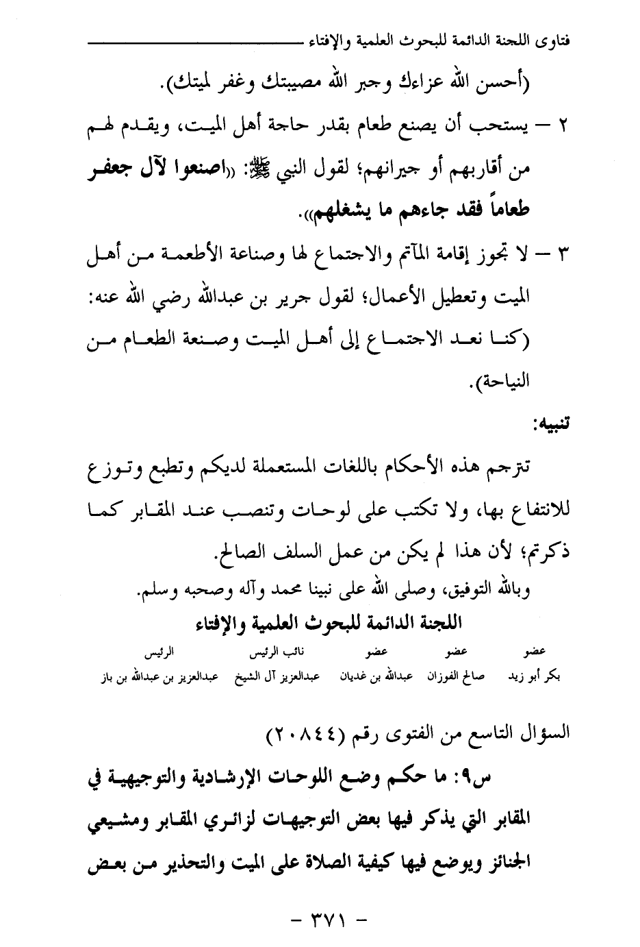 س 9: ما حكم وضع اللوحات الإرشادية والتوجيهية في المقابر التي يذكر فيها بعض التوجيهات لزائري المقابر ومشيعي الجنائز ويوضع فيها كيفية الصلاة على الميت والتحذير من بعض
