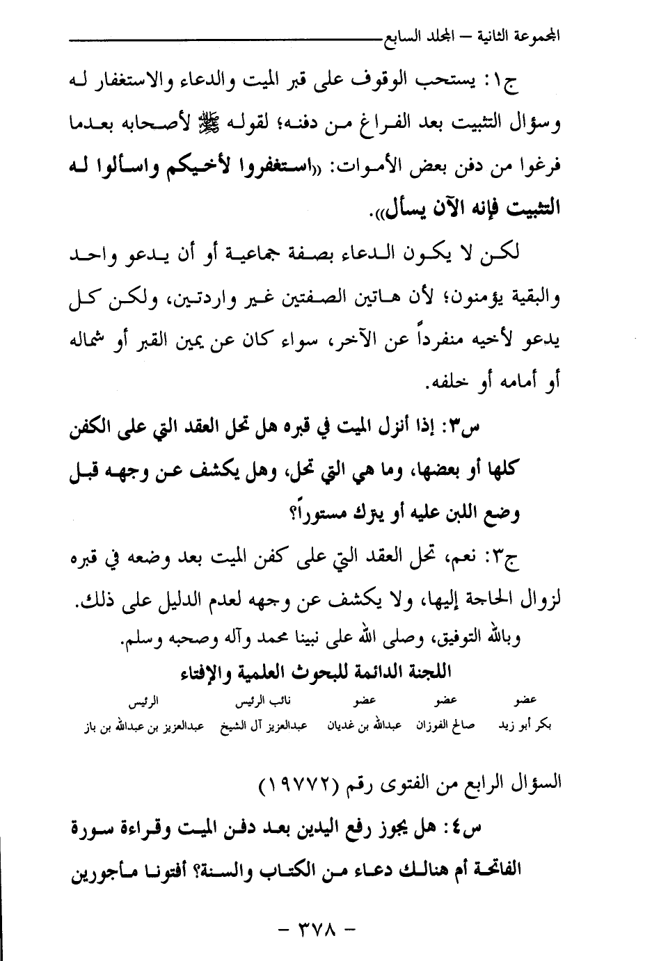 س 4: هل يجوز رفع اليدين بعد دفن الميت وقراءة سورة الفاتحة أم هنالك دعاء من الكتاب والسنة؟ أفتونا مأجورين