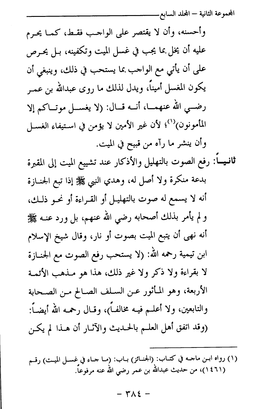 (¬1) رواه ابن ماجه في كتاب: (الجنائز) ، باب: (ما جاء في غسل الميت) رقم (1461) من حديث عبد الله بن عمر رضي الله عنه مرفوعا.