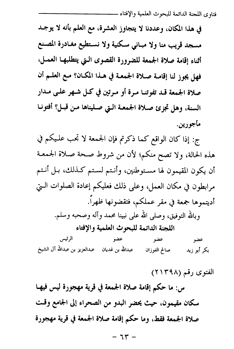 س: ما حكم إقامة صلاة الجمعة في قرية مهجورة ليس فيها سكان مقيمون، حيث يحضر البدو من الصحراء إلى الجامع في وقت صلاة الجمعة فقط، وما حكم إقامة صلاة الجمعة في قرية مهجورة