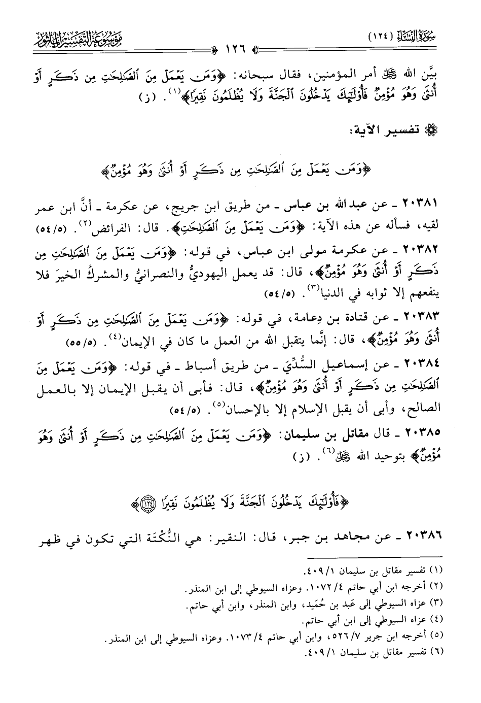 {فَأُولَئِكَ يَدْخُلُونَ الْجَنَّةَ وَلَا يُظْلَمُونَ نَقِيرًا (١٢٤)}