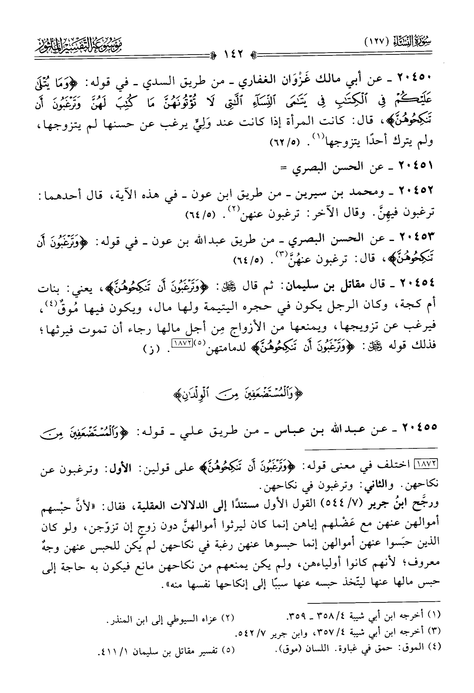 ٢٠٤٥٢ - ومحمد بن سيرين -من طريق ابن عون- في هذه الآية، قال أحدهما: ترغبون فيهِنَّ. وقال الآخر: ترغبون عنهن (¬٢). (٥/ ٦٤)