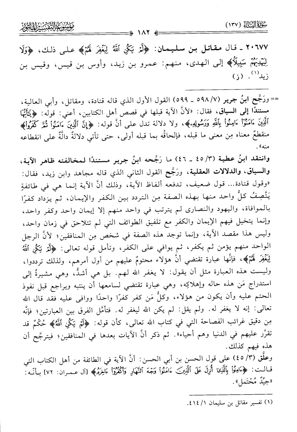 (¬١) تفسير مقاتل بن سليمان ١/ ٤١٤.