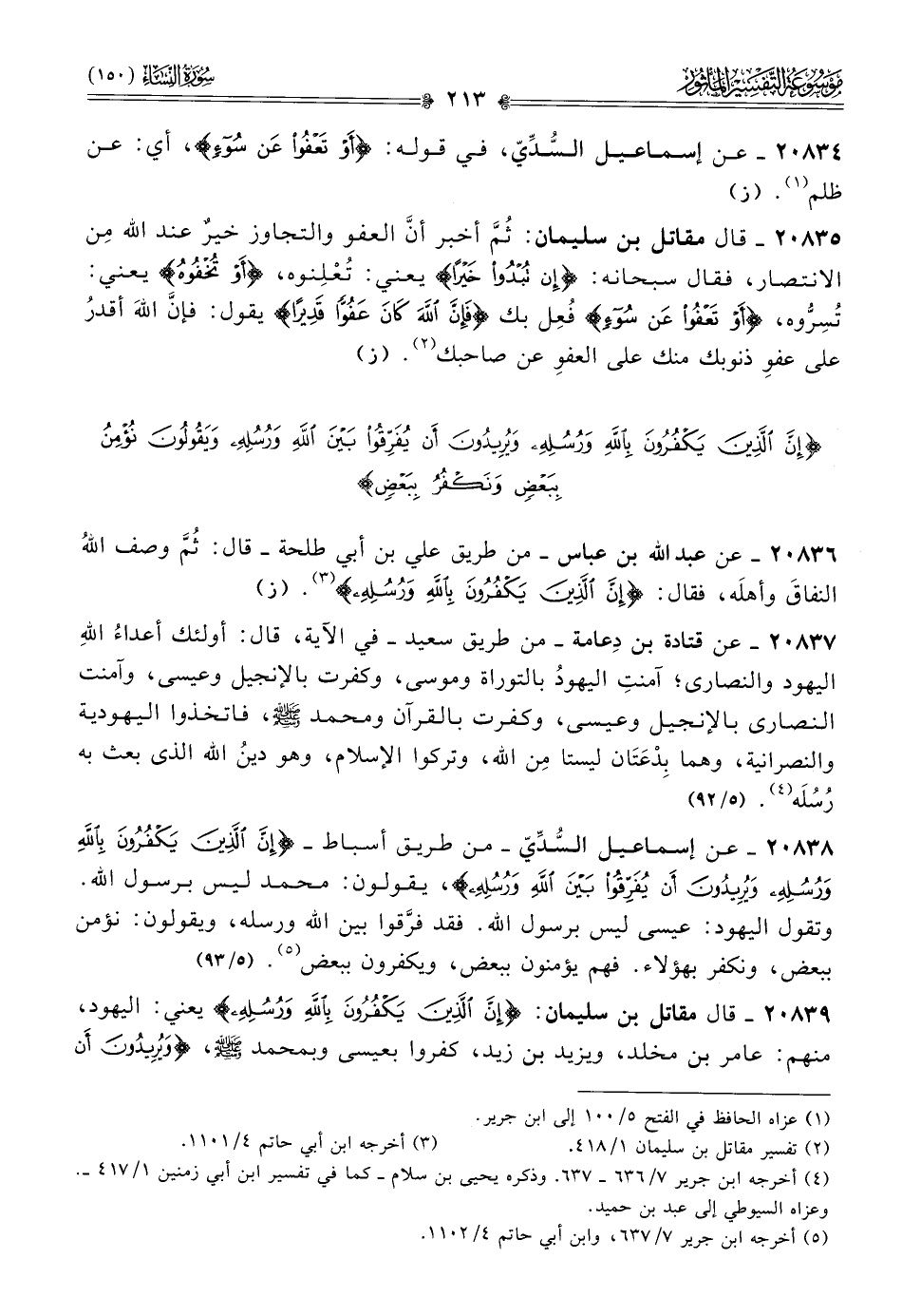٢٠٨٣٨ - عن إسماعيل السُّدِّيّ -من طريق أسباط- {إن الذين يكفرون بالله ورسله ويريدون أن يفرقوا بين الله ورسله}، يقولون: محمد ليس برسول الله. وتقول اليهود: عيسى ليس برسول الله. فقد فرَّقوا بين الله ورسله، ويقولون: نؤمن ببعض، ونكفر بهؤلاء. فهم يؤمنون ببعض، ويكفرون ببعض (¬٥). (٥/ ٩٣)