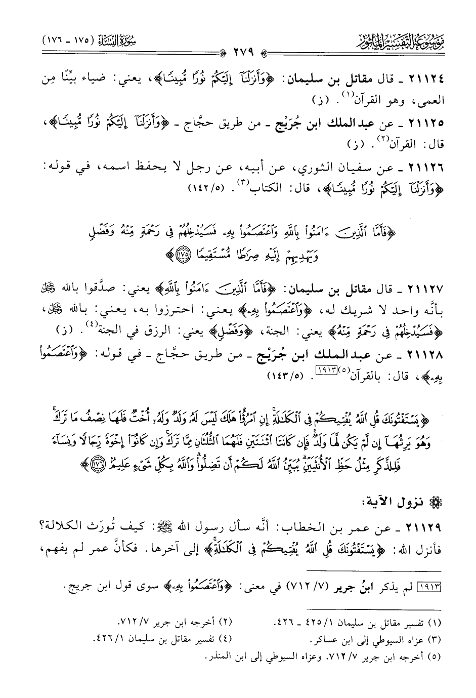 ٢١١٢٥ - عن عبد الملك ابن جُرَيْج -من طريق حجّاج- {وأنزلنا إليكم نورا مبينا}، قال: القرآن (¬٢). (ز)