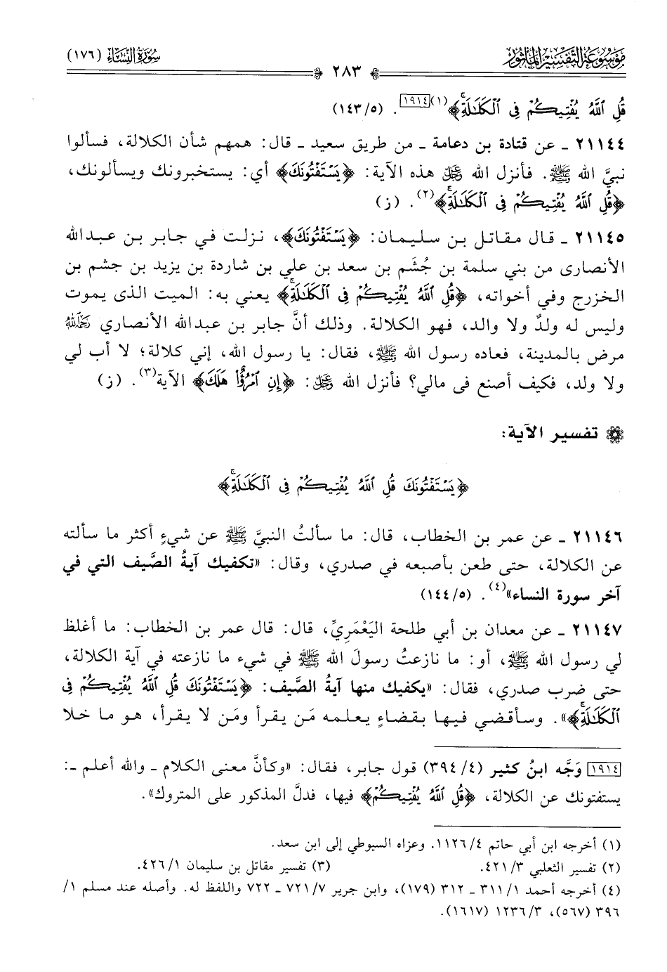 {يَسْتَفْتُونَكَ قُلِ اللَّهُ يُفْتِيكُمْ فِي الْكَلَالَةِ}