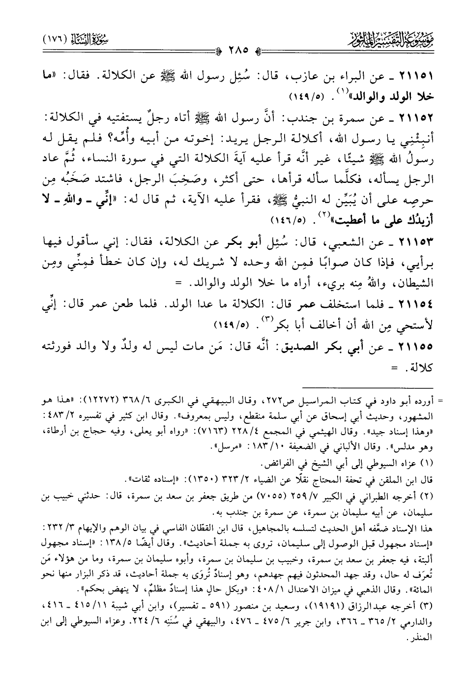 (¬٣) أخرجه عبد الرزاق (١٩١٩١)، وسعيد بن منصور (٥٩١ - تفسير)، وابن أبي شيبة ١١/ ٤١٥ - ٤١٦، والدارمي ٢/ ٣٦٥ - ٣٦٦، وابن جرير ٦/ ٤٧٥ - ٤٧٦، والبيهقي في سُنَنِه ٦/ ٢٢٤. وعزاه السيوطي إلى ابن المنذر.