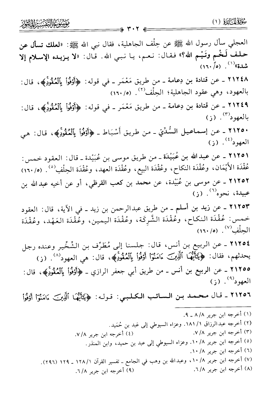 ٢١٢٥٣ - عن زيد بن أسلم -من طريق عبد الرحمن بن زيد- في الآية، قال: العقود خمس: عُقْدَة النكاح، وعُقْدَة الشَّرِكَة، وعُقْدَة اليمين، وعُقْدَة العَهْد، وعُقْدَة الحِلْفِ (¬٧). (٥/ ١٦٠)