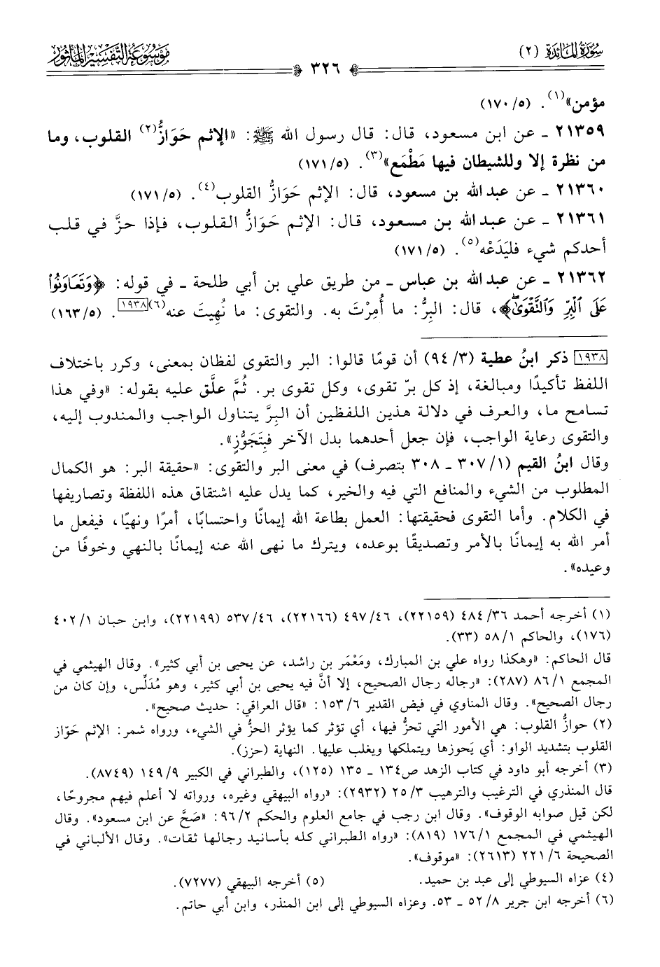 ٢١٣٦٠ - عن عبد الله بن مسعود، قال: الإثم حَوازُّ القلوب (¬٤). (٥/ ١٧١)