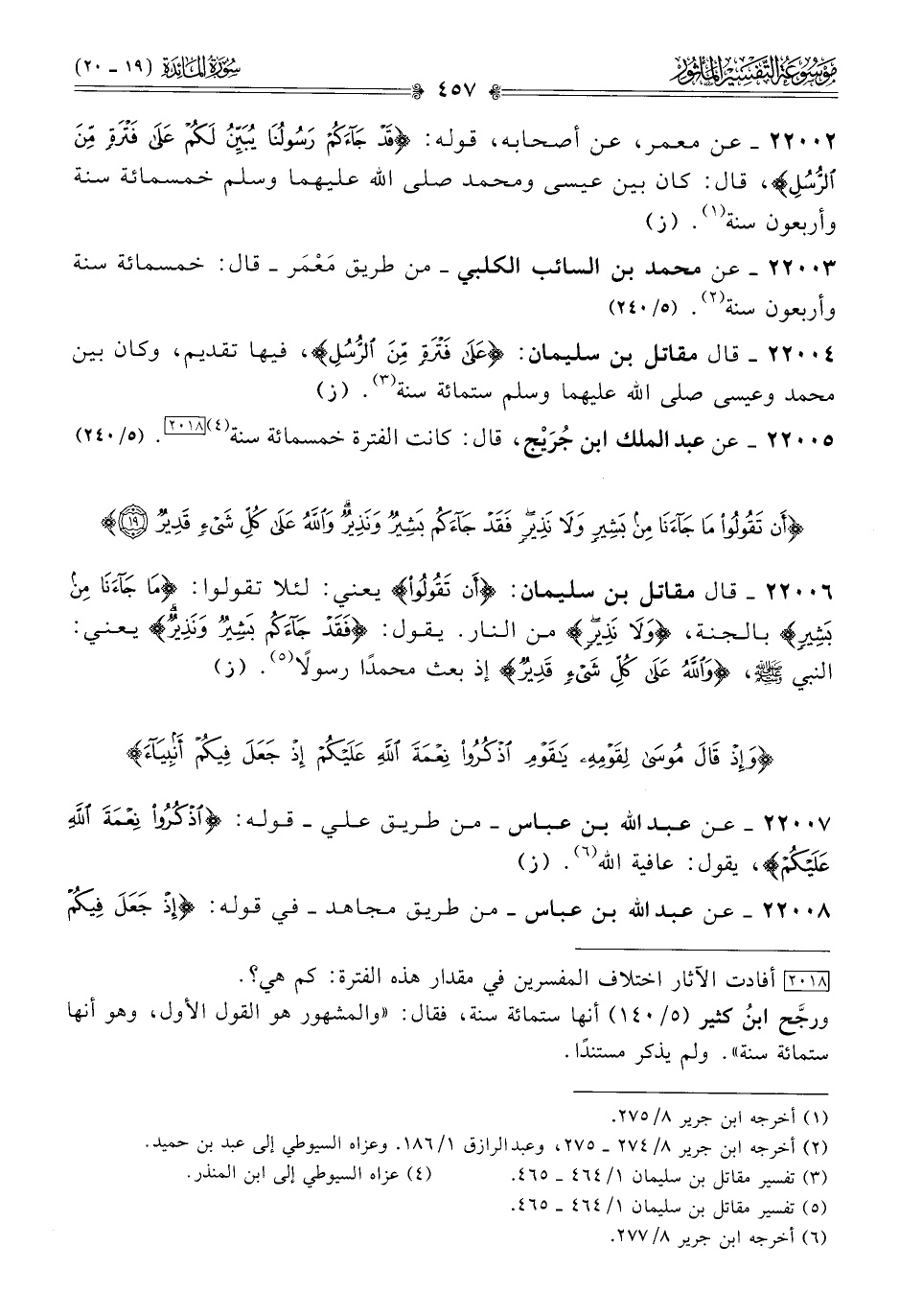 ٢٢٠٠٤ - قال مقاتل بن سليمان: {عَلى فَتْرَةٍ مِنَ الرُّسُلِ}، فيها تقديم، وكان بين محمد وعيسى صلى الله عليهما وسلم ستمائة سنة (¬٣). (ز)